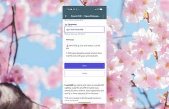 Found ICE is a tool to write down a possible ICE sighting using the SALUTE template (size, activity, location, uniform, time, equipment) and send it to those opposing ICE in the area. It's meant to run on the Delta Chat messenger which is available for iOS, Android, Windows, macOS, Linux, and even Ubuntu Touch.