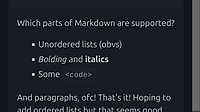 Aside from unordered lists that can be created like this: * A * B * C Ordered lists are now supported too! 1. A 2. B 3. C This app is still in development, so expect bugs! To upgrade to a new version:...